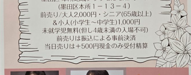 ソプラノとピアノのユニット≪下町Musiqアンサンブル≫の企画による第5回公演『下町わくわくコンサート』を来たる3月29日(日)に開催します。恒例のわくわくメドレーはこの度から名称変更をし“ブーケシリーズ”となります。今回は“ブーケ・ドゥ・プランタン”、世界の春の名曲をお送りいたします。その他クラシ…